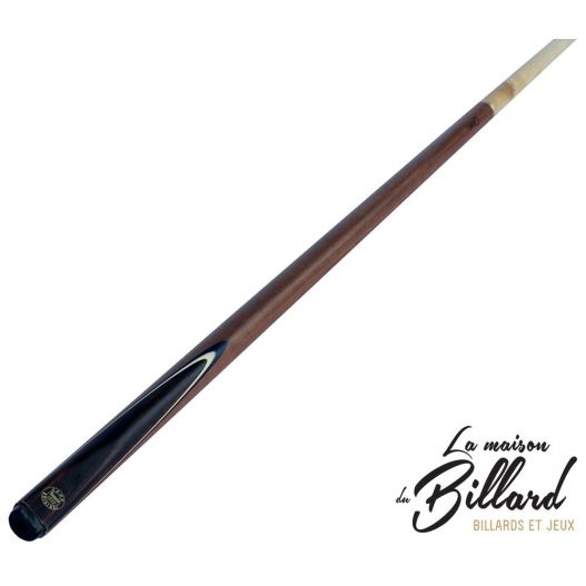 La queue de billard se divise en 2 avec jonction classique en laiton. La virole en laiton est équipée d'un procédé en cuir de 9 mm de diamètre. Le talon de la queue est équipée d'un caoutchouc de protection afin de limiter l'usure du fût.