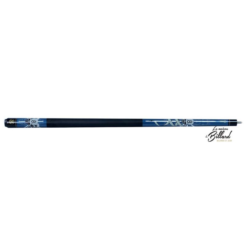 Superbe queue de billard américain au style gothique ! Les dessin de cette queue US représentent des têtes de mort tatouées du n° 8 emblématique du billard américain. Le détail des images ne laissera pas indifférents les amateurs de dessins.