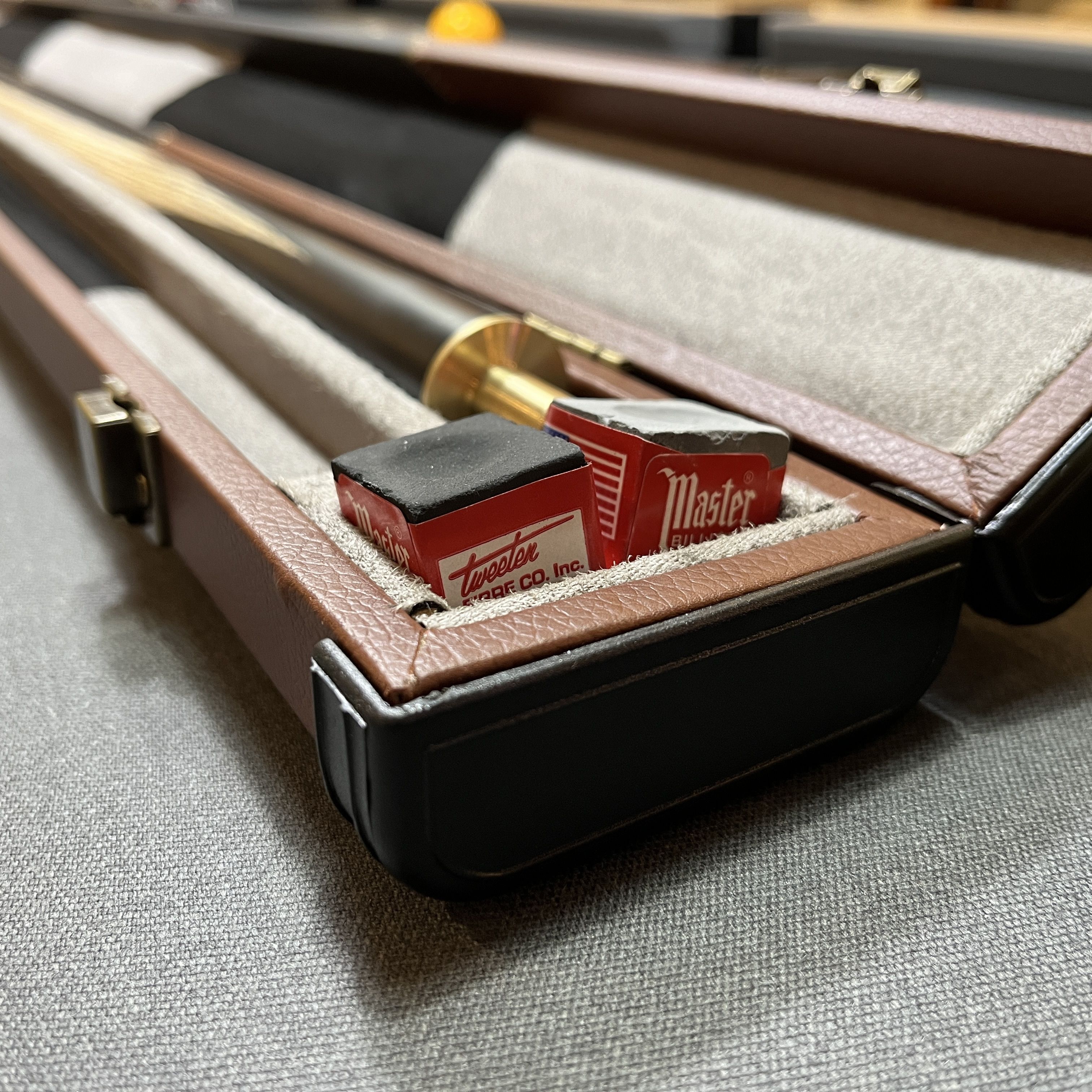 Stockez ou emportez votre queue de billard en toute sécurité avec cette nouvelle gamme de mallettes Lord-Cue en simili cuir marron et noir.