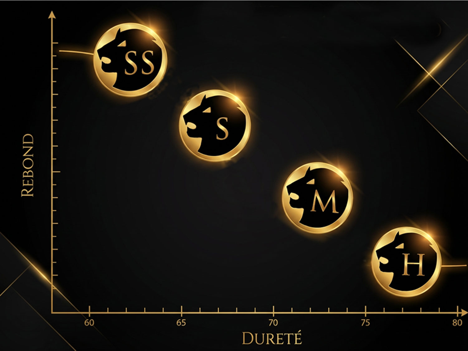 En cas de doute, la dureté M (Medium) reste le choix le plus polyvalent. Elle offre un bon équilibre entre contact, contrôle et stabilité. et offre une belle durabilité.