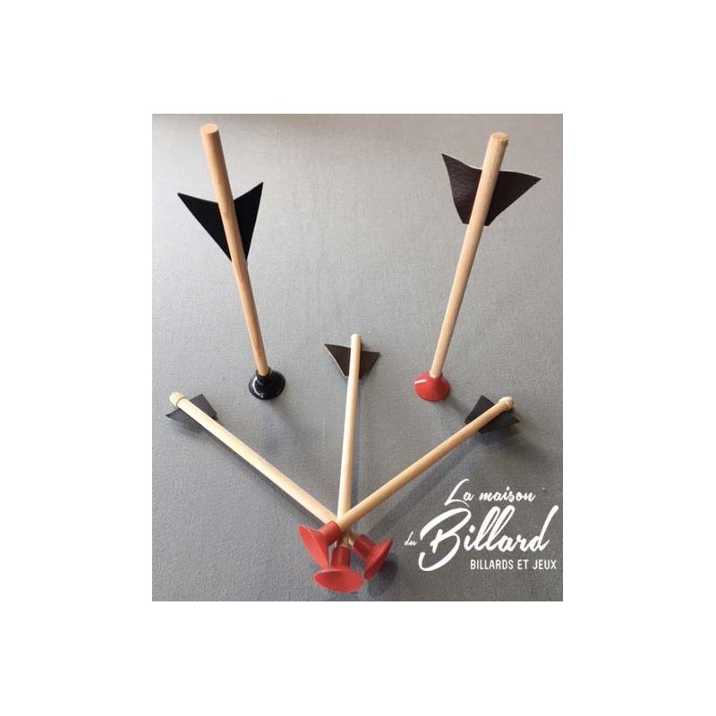 Cette fléchette en bois mesure 21 cm. Elle est munie d'une ventouse en caoutchouc.