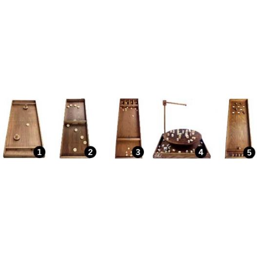 Un jeu en bois que l'on retrouve le plus souvent en version électronique dans les bowling et autres salles de jeux. Ici il est entièrement fabriqué en bois et n'inclut pas d'électronique, donc aucun risque de panne !