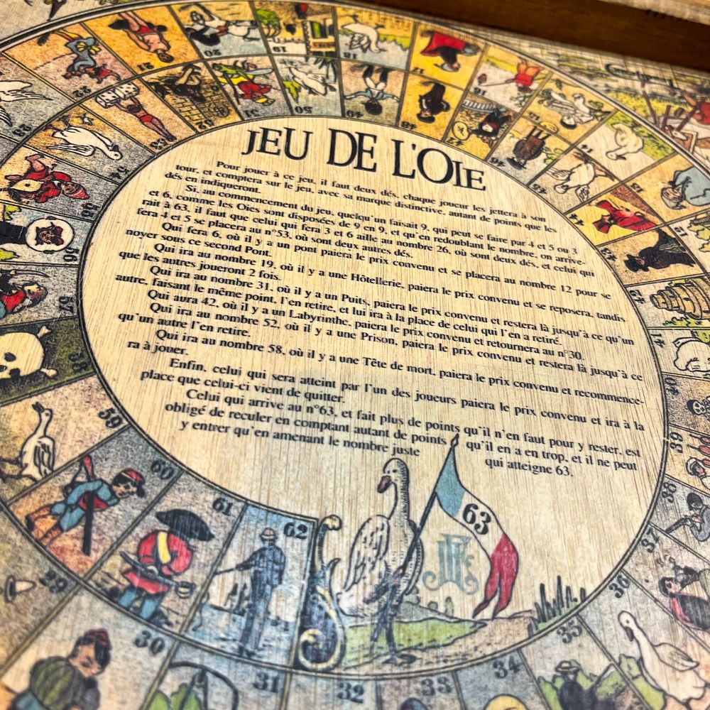 - Règle du jeu de l’oie inscrite sur plateau, afin de l’avoir toujours à portée de main.