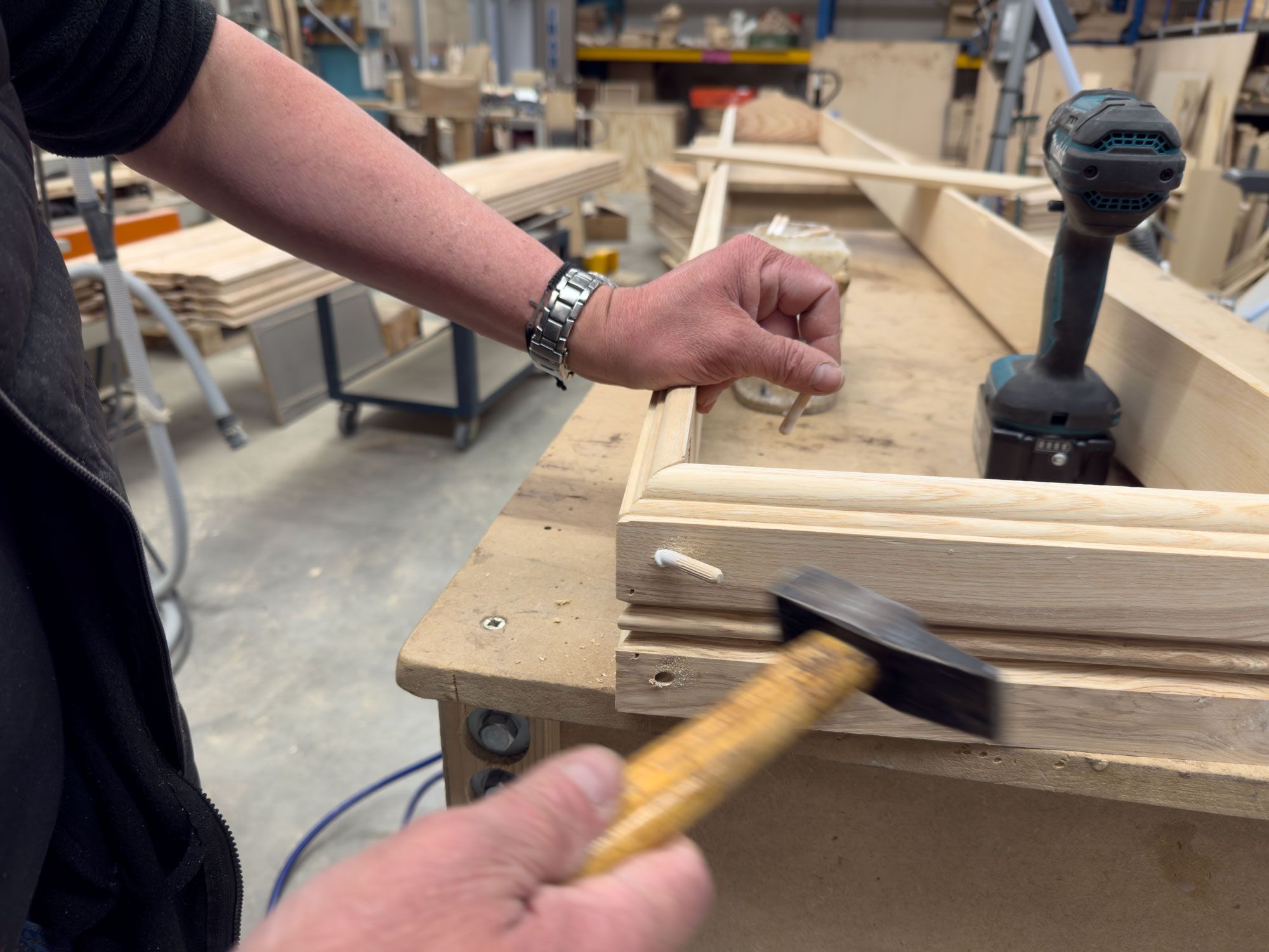 Tout est chevillé à l’ancienne, selon les techniques d’ébénisterie que nos aïeux utilisaient déjà pour fabriquer du mobilier durable. Chaque assemblage respecte cette tradition, pour un rendu solide et net, sans vis apparentes.