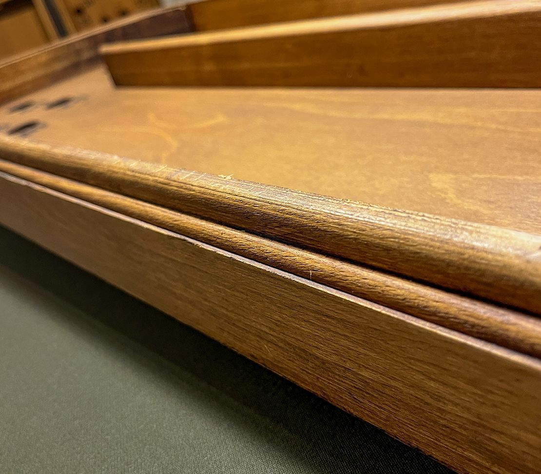 Afin de protéger le jeu de l’usure, celui-ci est ciré. Cette cire est appliquée à la main et donne une teinte marron qui lui donne un aspect authentique.