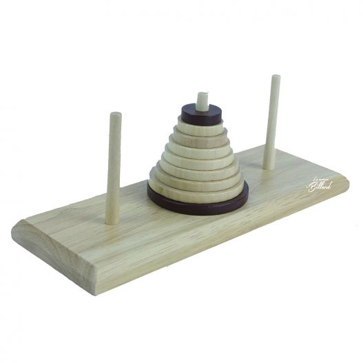 Jeu de réflexion Tour Hanoï en bois d'hévéa, avec 9 disques.