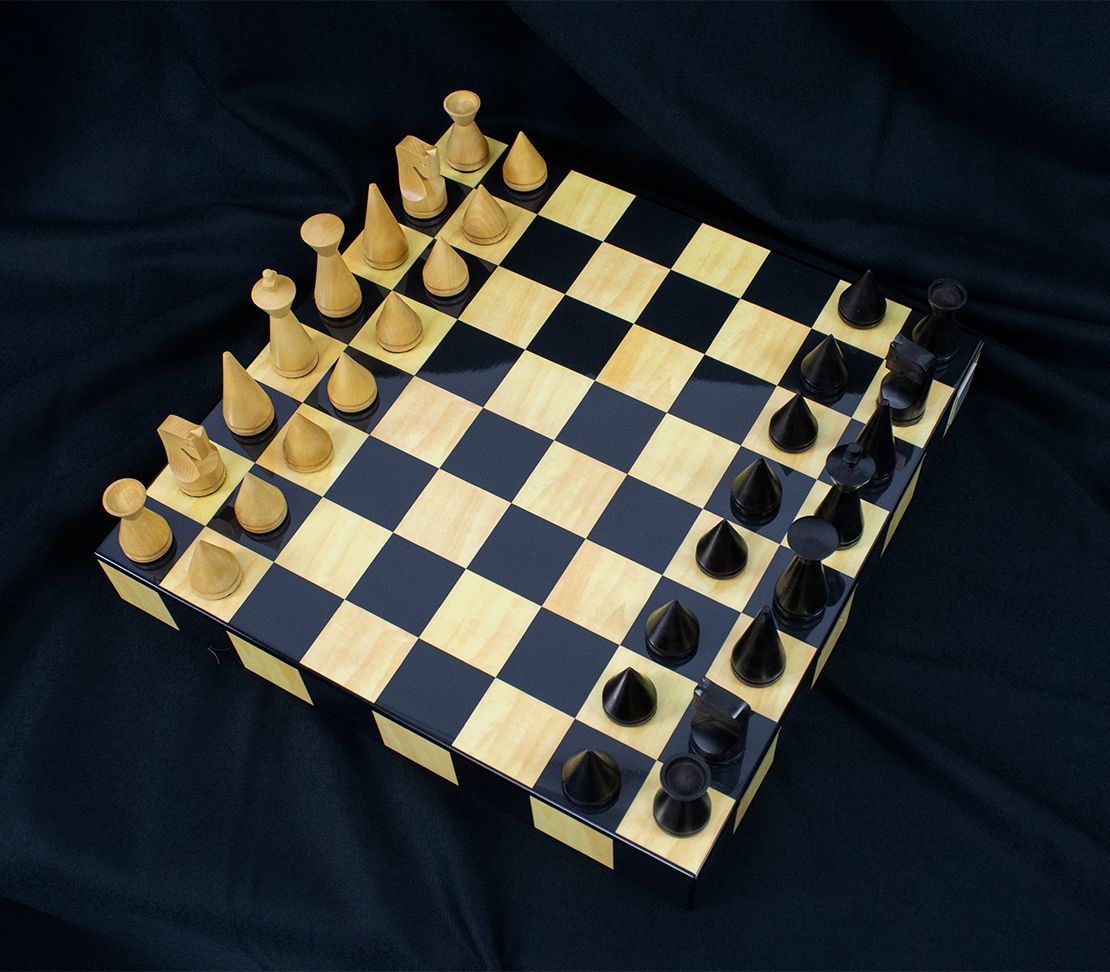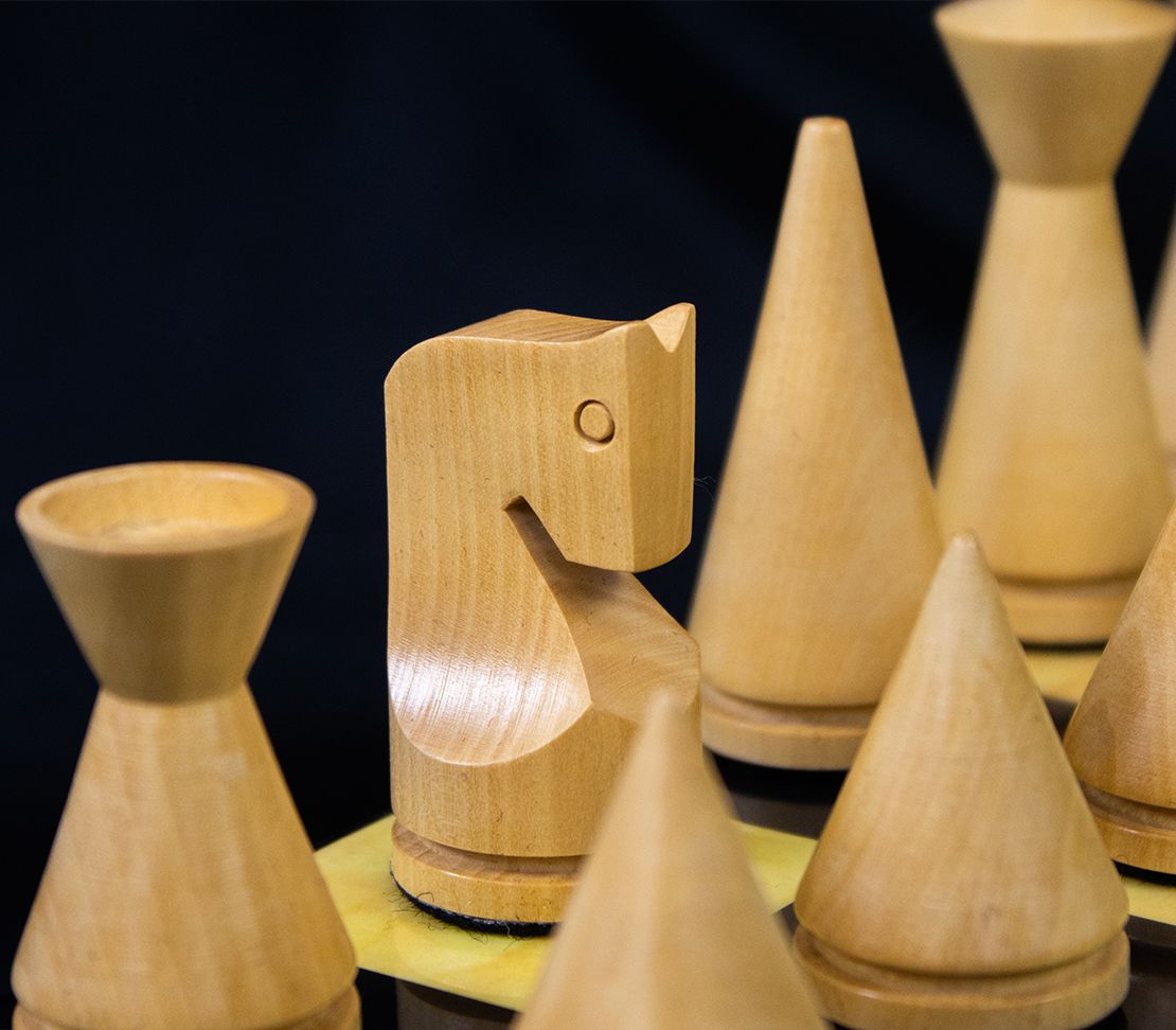 Chaque pièce de ce jeu d'échec moderne est une véritable œuvre de précision. Les pions arborent une silhouette conique affirmée, tandis que les autres pièces adoptent des formes audacieuses, résolument modernes, mais finement exécutées.