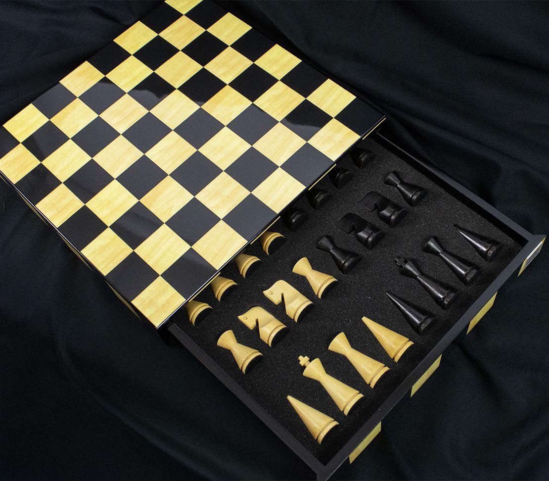 Un jeu d'échecs qui casse les codes. Minimaliste, épuré, conçu pour les amateurs de belles choses et les stratèges aguerris. Un design qui attire le regard, une ergonomie qui sublime chaque mouvement, et un rangement astucieux qui disparaît à l'œil nu. Plus qu'un simple jeu, un objet qui impose sa présence.