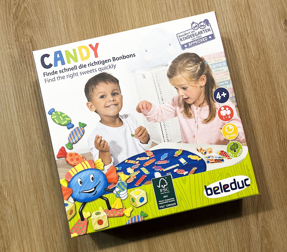 Pas de matériaux fragiles ici. Les bonbons sont en bois, le tapis est doux et solide, et les dés tiennent la route. Pas de risque qu’un morceau de plastique finisse sous le canapé après deux parties.