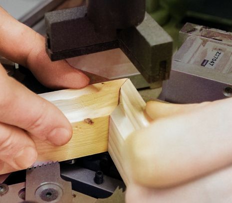 Pour assurer une bonne stabilité dans le temps, nous avons opté pour un assemblage en V, souvent utilisé dans l’encadrement d’art. C’est un procédé inventé en France en 1976. Son avantage : il est robuste et l’assemblage à angle 45° est impeccable.