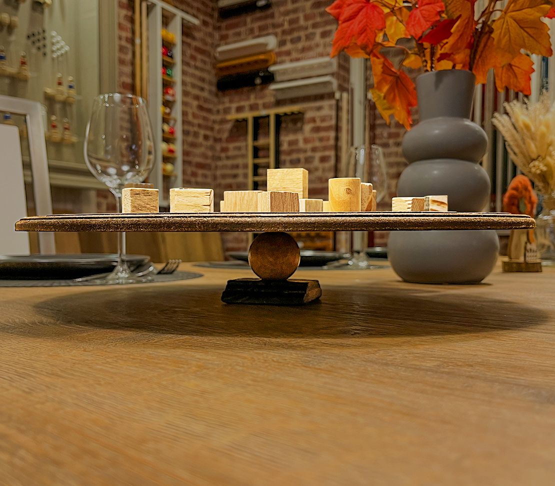 C’est simple et rapide ! Prenez le plateau avec votre main dominante, placez-le au centre, puis ajustez la bille en bois en dessous avec votre autre main jusqu’à obtenir le parfait équilibre. En moins de 20 secondes, vous êtes prêt à jouer !