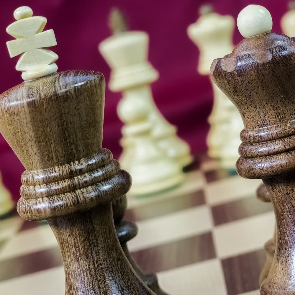 Si vous manquez un peu de place ou préférez un jeu d’échecs plus discret, optez pour notre version 40 x 40 cm. Les cases passent alors à 40 mm, les pièces deviennent légèrement plus petites et légères, mais la qualité de la marqueterie reste intacte. Idéal pour les espaces restreints ou pour ceux qui souhaitent transporter facilement leur jeu. Voici quelques exemples.