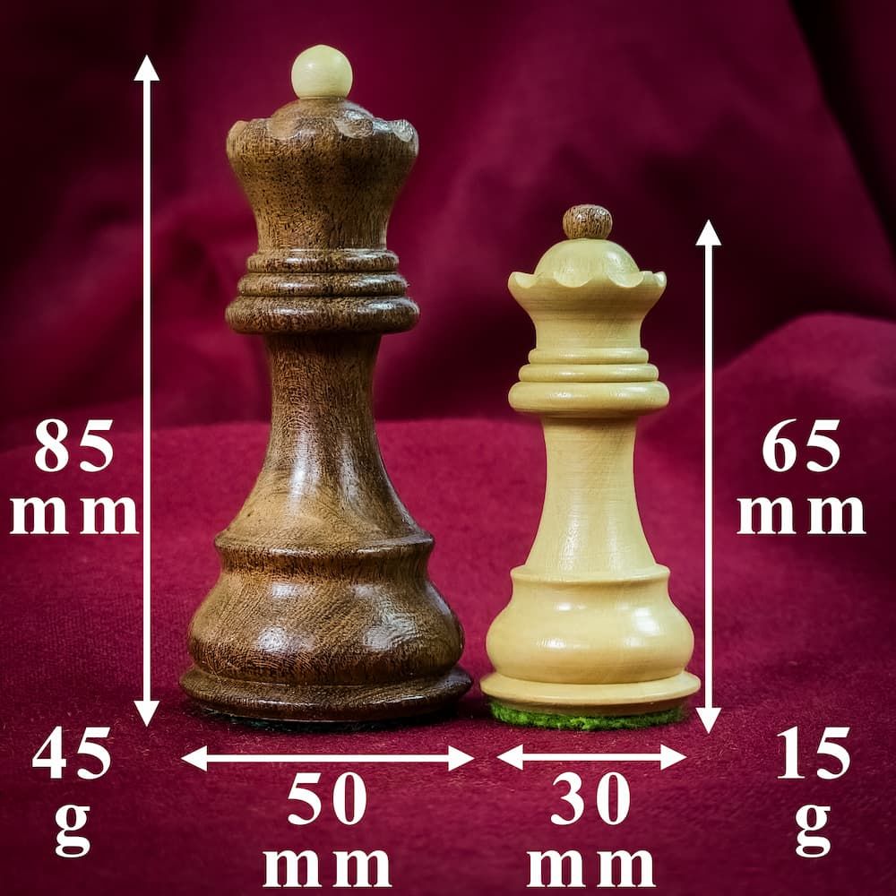 Taille de l'article :Plateau 45 x 45x 1 cm - cases de 5 x 5 cm - roi 98 mm - dame 85 mm
