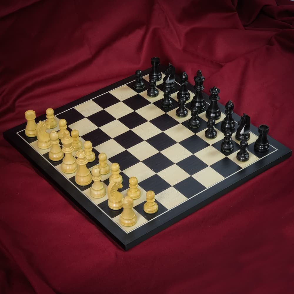 Un set de pièces d’échecs en bois massif bois ébonisè et buis. Découvrez cet élégant jeu d’échecs au style Stauton. Les pièces sculptées avec finesse et le plateau marqueté avec un placage en bois ébonisè et érable rendent ce jeu aussi joli que passionnant.