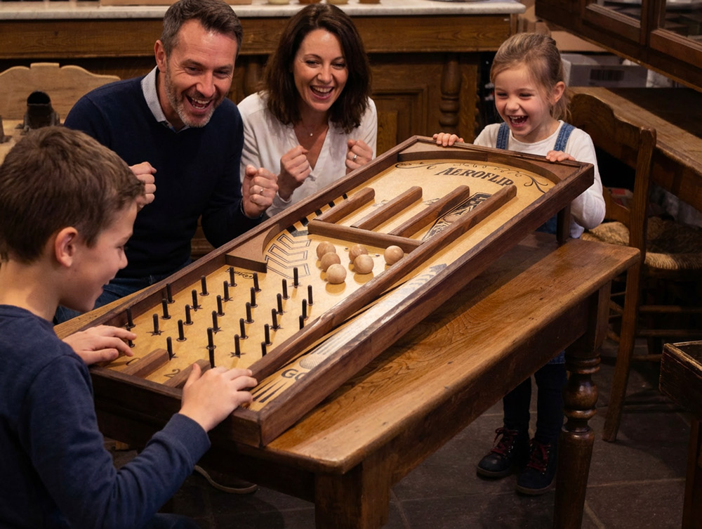 uste du bois, du vrai, et une mécanique simple qui ne tombe jamais en panne. Conçu et fabriqué dans notre atelier du Nord, l’Aeroflip est réalisé à partir de matériaux 100 % issus de forêts gérées durablement. Un jeu intemporel, pensé pour traverser les années sans jamais perdre son charme — parce que le vrai plaisir, lui, ne passe pas de mode.