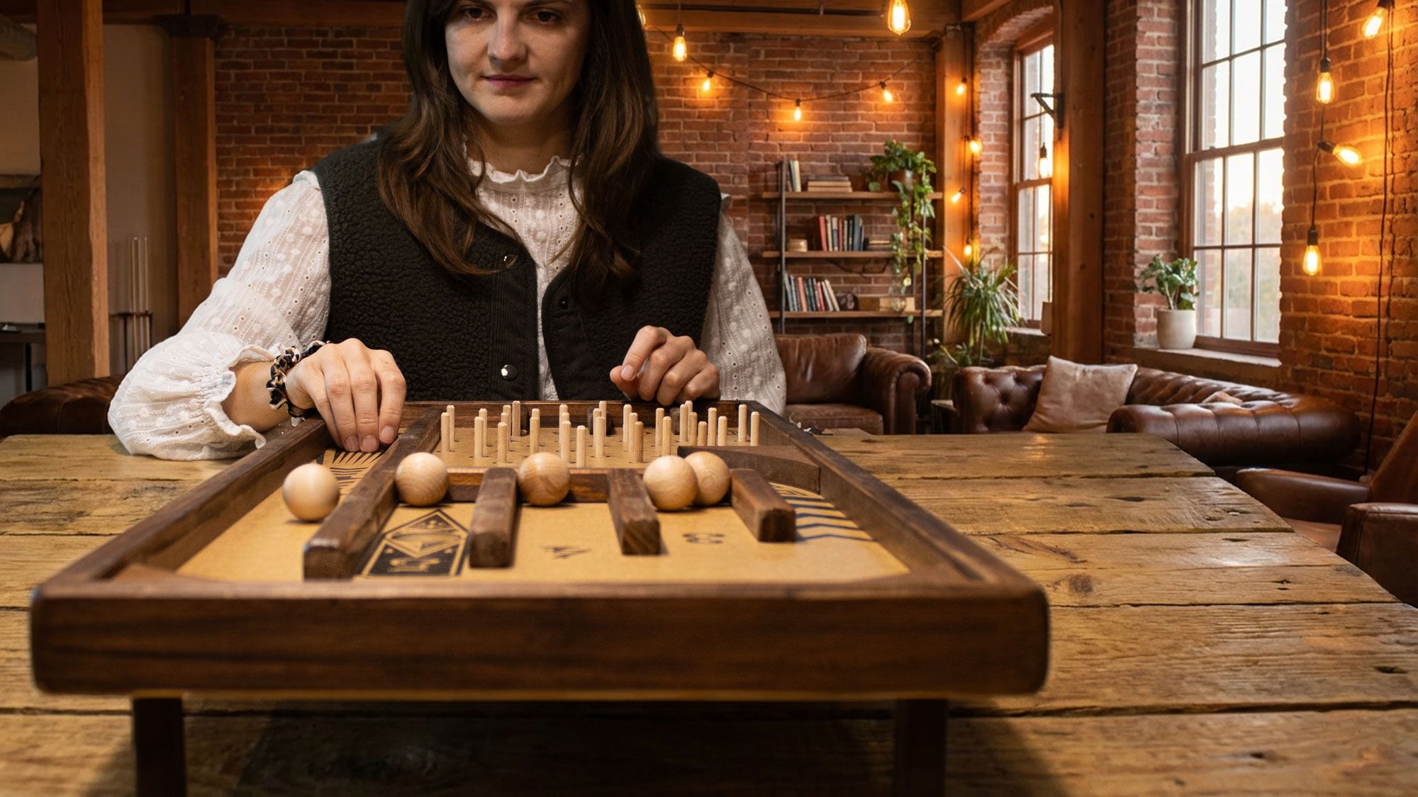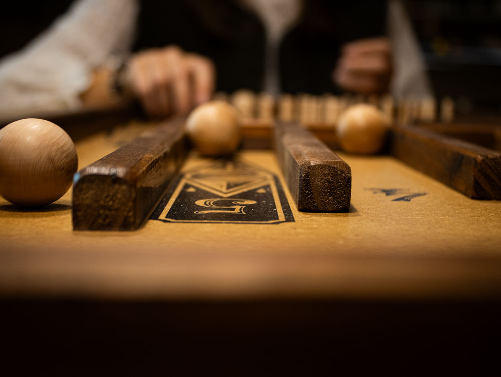 Écoutez le bruit des billes qui roulent, qui claquent sur les parois des casiers, ou qui rebondissent sur les clous, mais surtout profiter de cet instant de jeu partagé avec les autres.