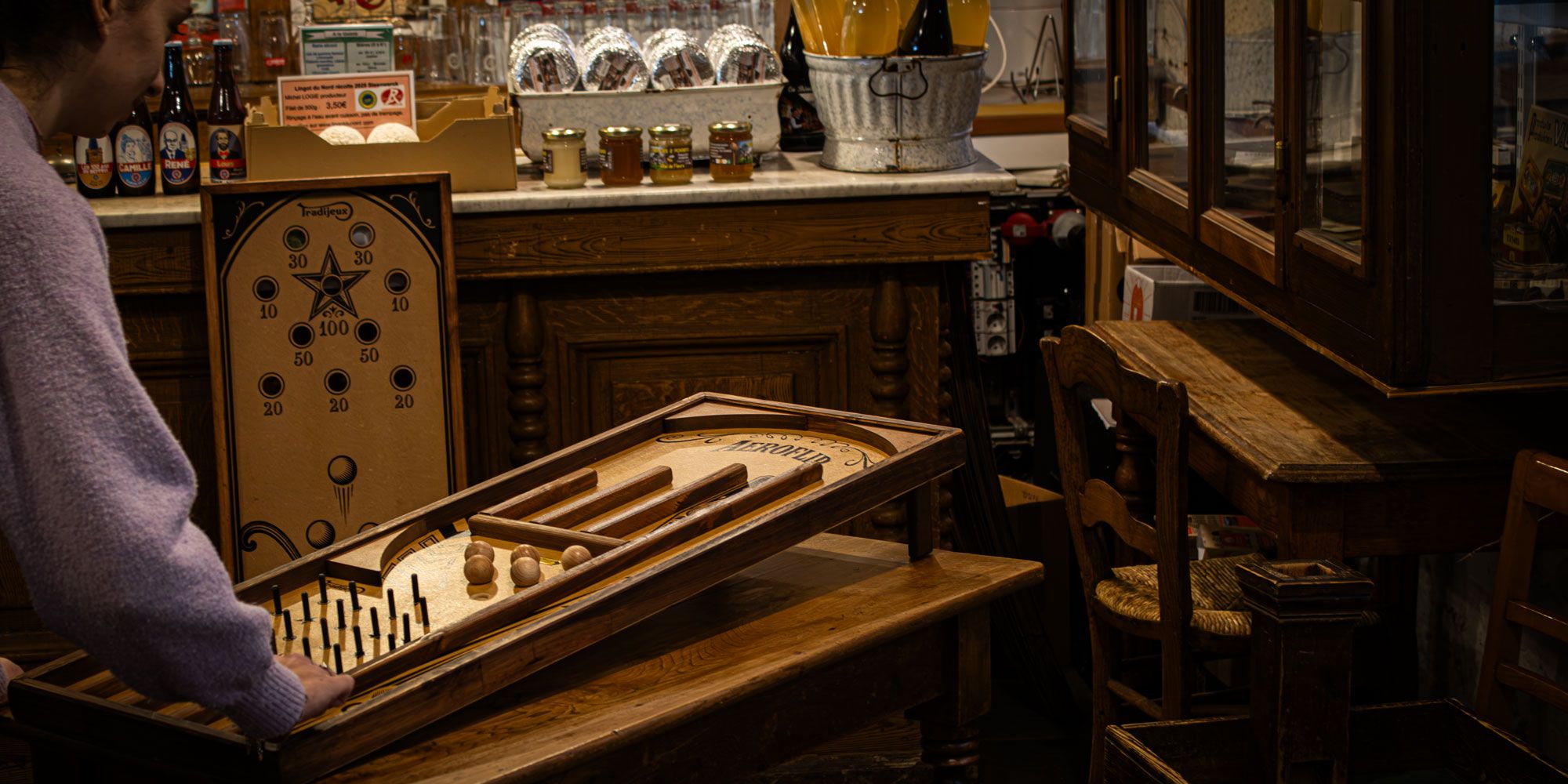 L’Aeroflip est un subtile jeu d’adresse où il faudra tirer les billes avec justesse pour marquer un maximum de points.