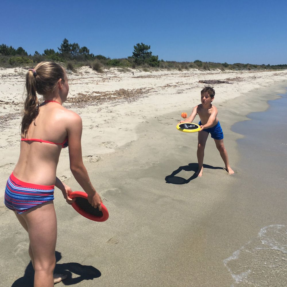 - Stimulez votre créativité avec la raquette de plage et le frisbee. Ces deux possibilités de jeux vous permettront de les mixer et de créer de nouvelles façons de jouer.