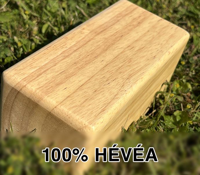 Un bon jeu de Kubb, ça commence par une bonne sélection de bois. Pour la version « Kubb compétition », c’est l’hévéa qui est choisi, un bois dur et résistant aux chocs. De plus, cette version championnat se distingue par une fabrication sans contre-collage. En effet, le jeu est taillé dans de gros morceaux de bois en pleine masse, un gage de qualité et de distinction.