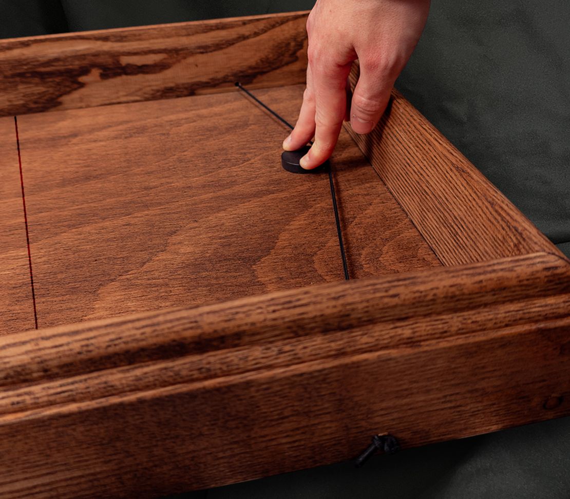 La surface de jeu se patinera dans le temps, grâce à sa cire. Ainsi, elle glissera de plus en plus au fil du temps. Les palets améliorent également la glisse, puisque ceux-ci sont réalisés en buis, un bois dense et très lisse qui renforce l’aspect glissant de ce jeu en bois.