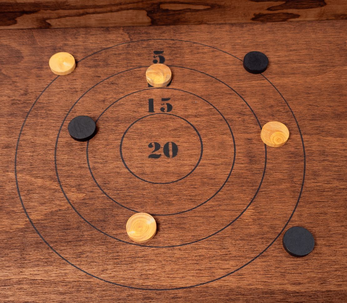 Déroulé : Les joueurs lancent chacun leur tour un palet. L’objectif est de marquer un maximum de points en prenant les meilleures places sur la cible. Mais attention à l’adversaire qui peut vous faire sortir de la piste !