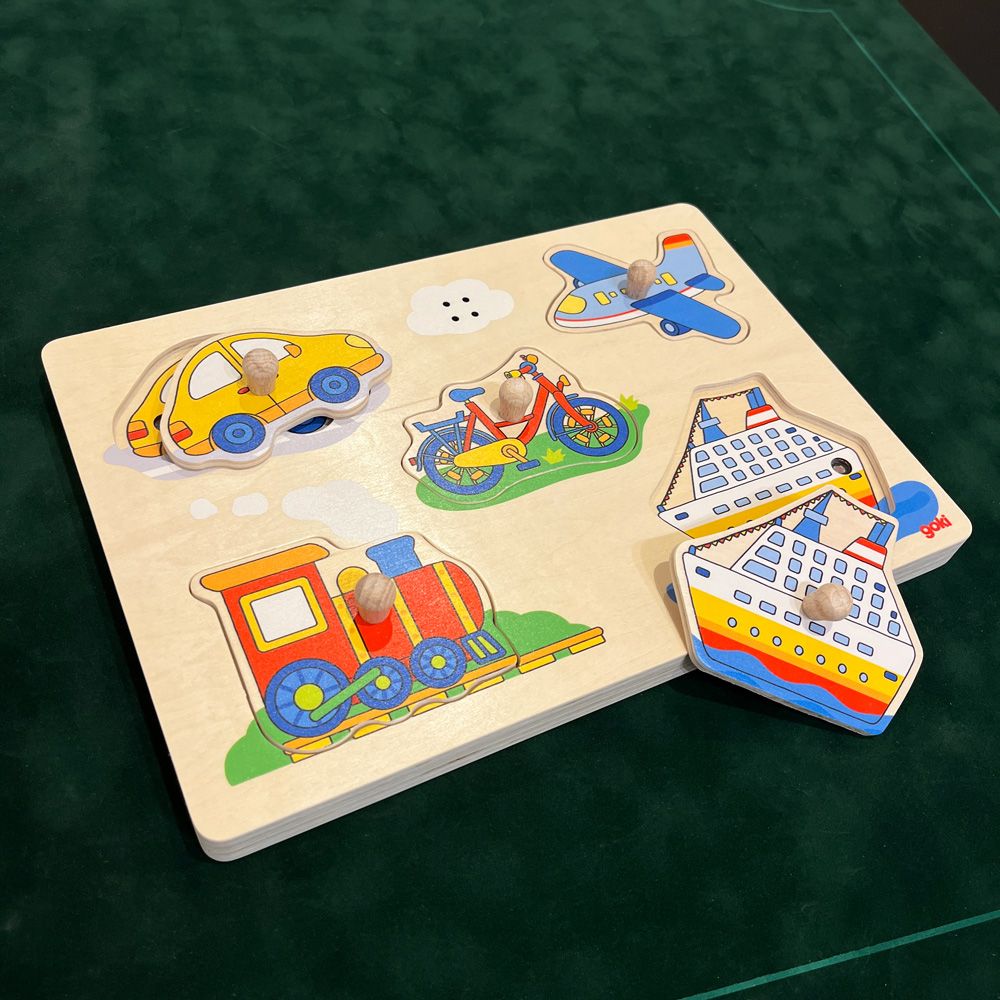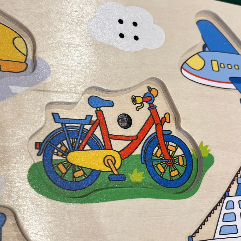 - Puzzle Sonore Véhicules en Bois - Éveillez les Sens et Explorez le Monde