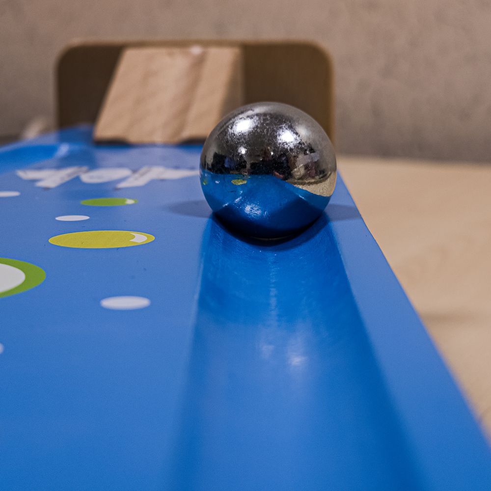 Côté qualité, difficile de faire mieux : des barres de remontées en métal pour un effet Roll-Up dynamique, une bille en acier qui donne un vrai feeling de flipper et une rampe de lancement en bois massif qui ajoute du challenge.