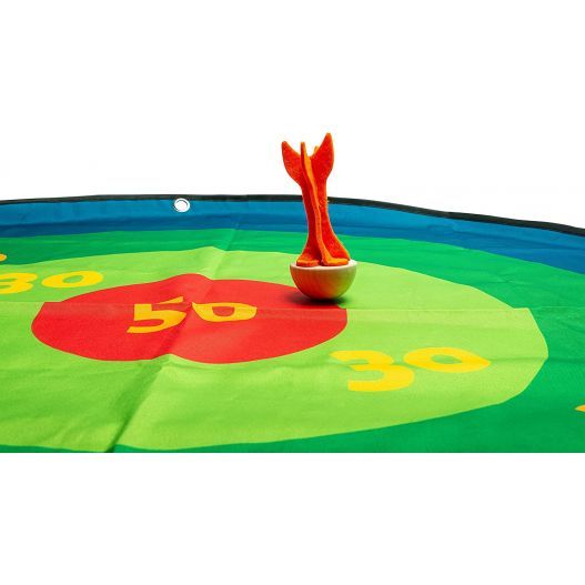 Placez la cible en tissu au sol en utilisant les sardines incluses dans ce jeu d'extérieur pour éviter qu'elle ne s'envole. Ensuite, définissez une zone de lancement plus ou moins éloignée en fonction de l'âge de vos enfants (vous pouvez en avoir plusieurs). Ensuite, les joueurs lancent tour à tour les 3 fléchettes sur la cible. Le but est de marquer un maximum de points en visant le centre de la cible. Lorsque les trois fléchettes sont lancées, le compte des points est effectué. Le premier joueur qui atteint 500 points remporte la partie.