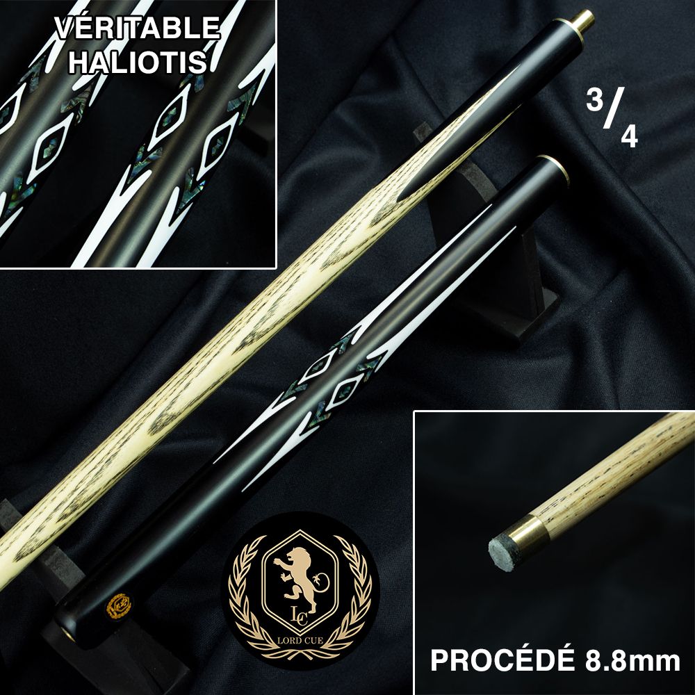 La Lord cue Haliotis, pièce maîtresse de ce pack, allie luxe naturel et performance de jeu. Les incrustations artisanales en nacre véritable et résine acrylique confèrent à chaque queue un style unique, tel un bijou façonné par la mer.
