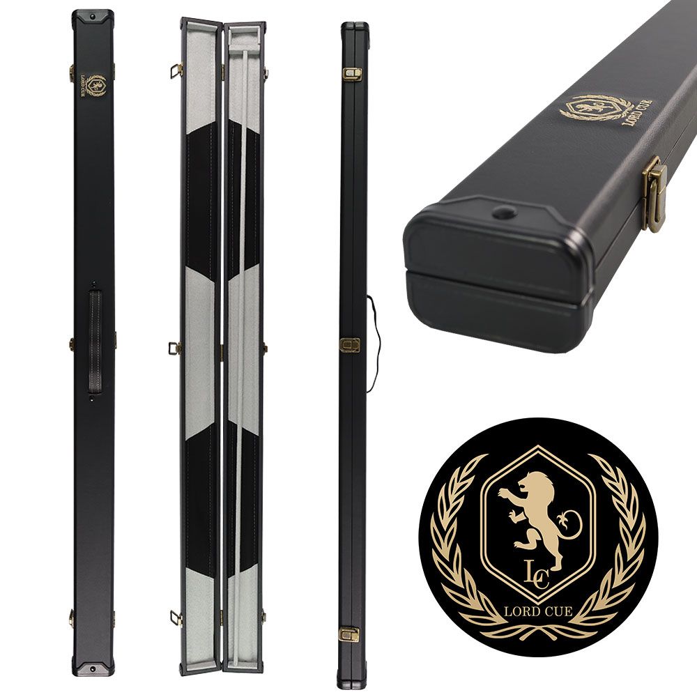 Son revêtement noir, rehaussé de renforts discrets, contraste harmonieusement avec les incrustations nacrées de la queue Haliotis. L’intérieur est soigneusement rembourré et conçu pour accueillir les deux parties (fût et flèche) séparément, tout en laissant de la place pour deux craies, garantissant ainsi un rangement soigné et fonctionel.