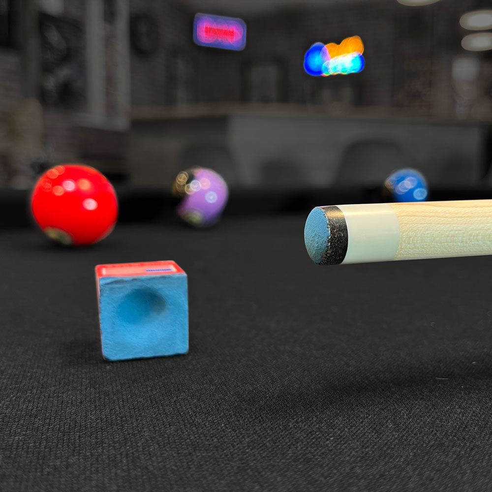 La flèche accueille un procédé en cuir de 13 mm (une taille standard pour le billard américain). Celui-ci permet d’appréhender tous les coups, casse comprise.