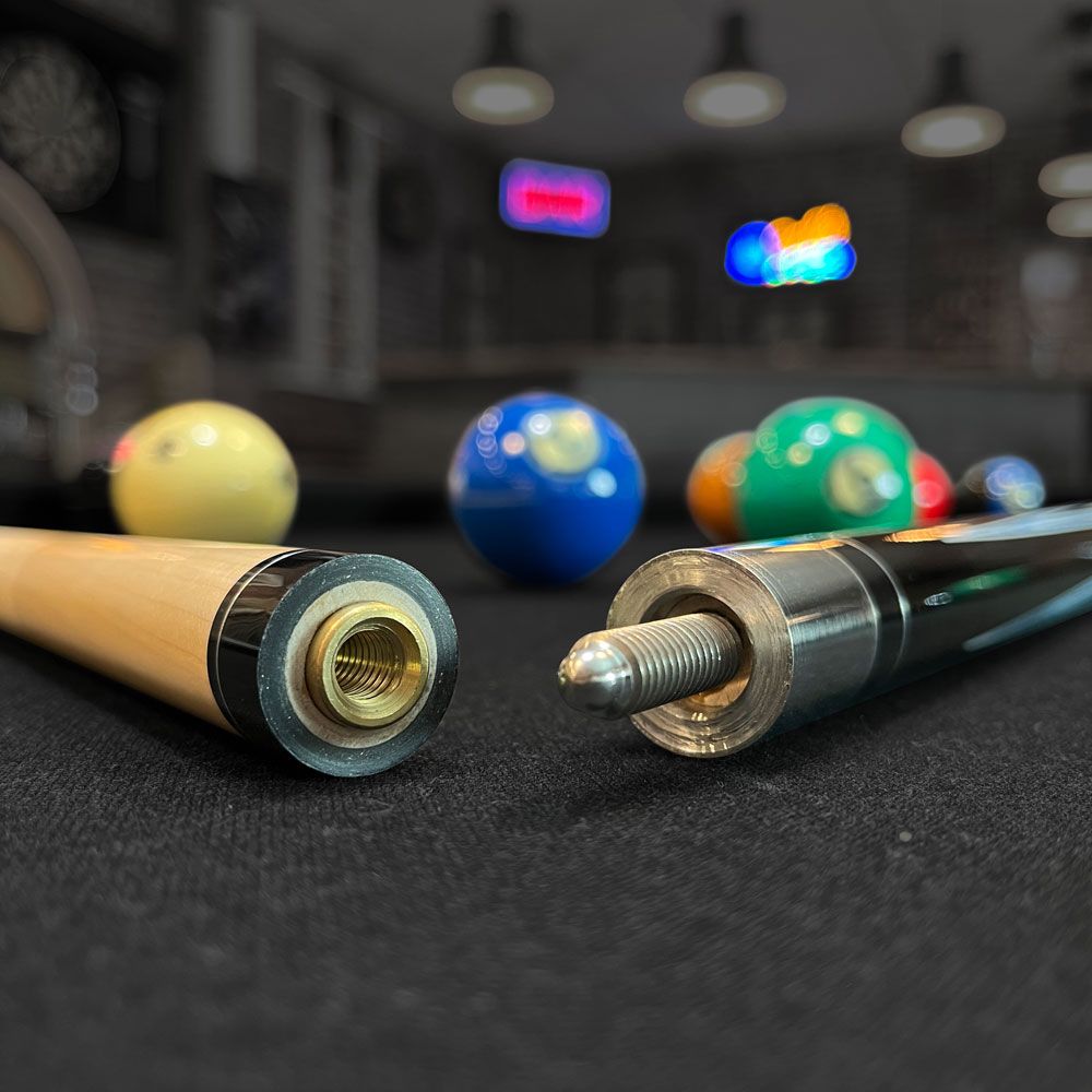 La flèche de cette queue de billard est fabriquée en érable canadien, une variété de bois appréciée pour sa rigidité et ses propriétés mécaniques.