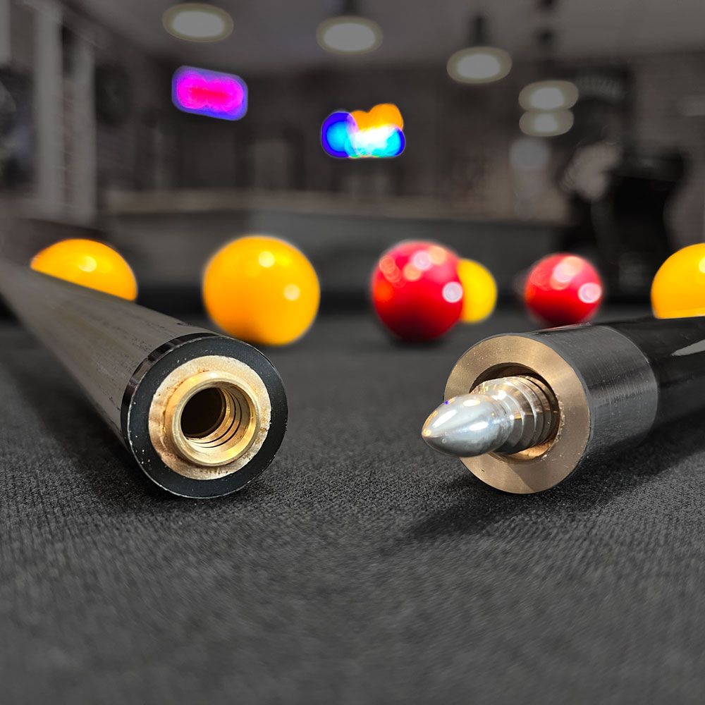 Pour cette queue de billard 8 pool, nous avons voulu briser les codes. Pour éviter d'avoir une queue ordinaire, nous avons décidé de créer une queue spécialement conçue pour jouer sur les petites billes de 50,8 mm, tout en conservant les avantages d'une queue de billard américaine.