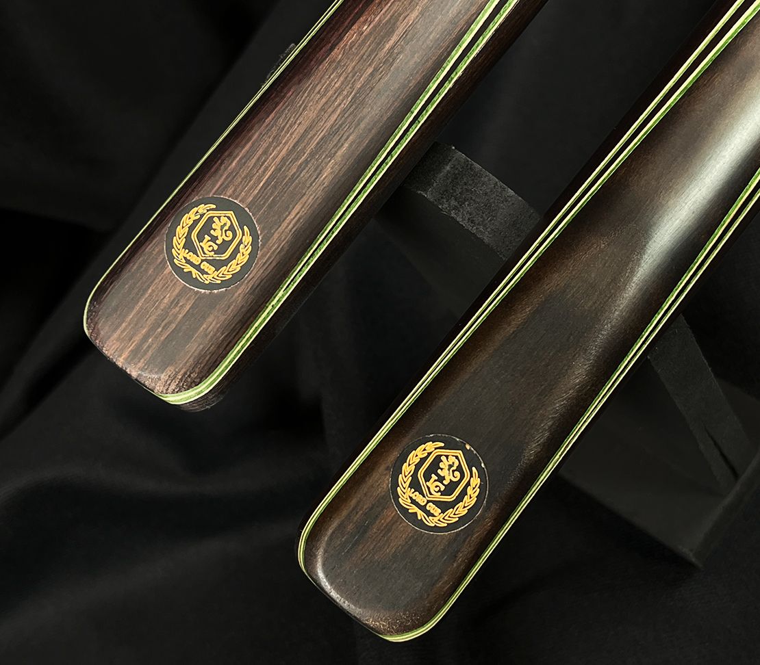Finition : Queue faite main, ornée de marqueteries complexes comprenant 15 flammes sur le fût et 4 sur la flèche.
