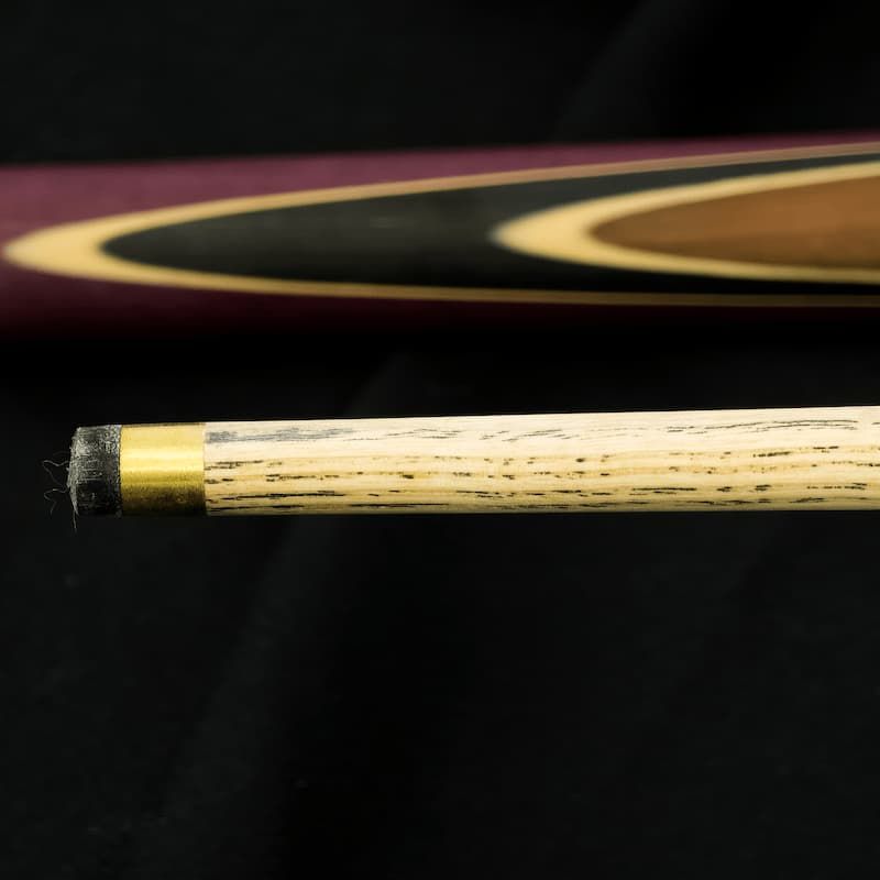 Nous vous proposons ici un modèle décliné en plusieurs couleurs. Nous avons négocié avec notre producteur de queues afin d’obtenir un avantage sur la technique, quitte à empiéter légèrement sur le choix esthétique. Finalement, nous avons trouvé un accord sur du bois de frêne avec une incrustation de couleur wine et marron. Ainsi, la queue que vous recevrez sera unique et aura soit une incrustation wine, soit une incrustation marron, soit les deux.