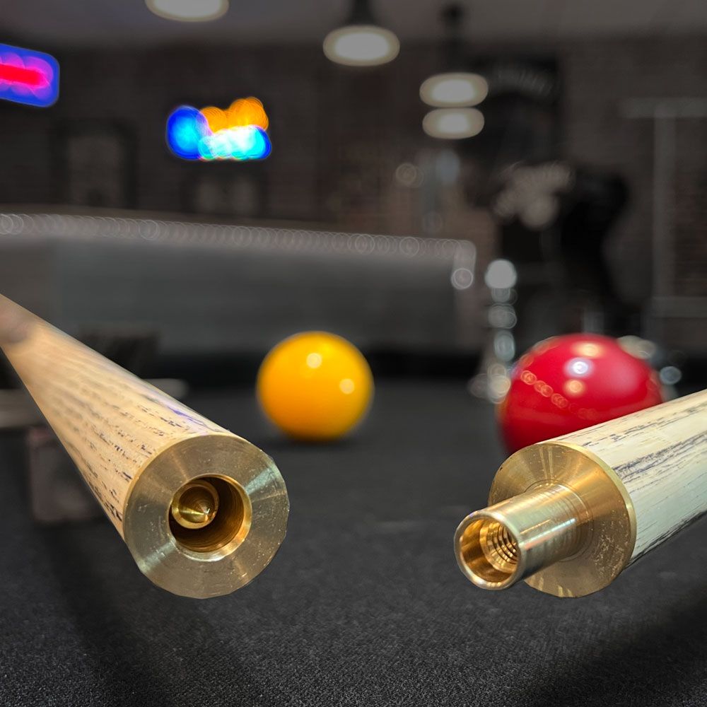 La jonction "smash-ash" permet de conserver le sens naturel du fil du bois, lorsque les deux parties sont vissées entre elles. Cette façon d’assembler la jonction offre un jeu pur, sans avoir à transporter une queue monobloc.