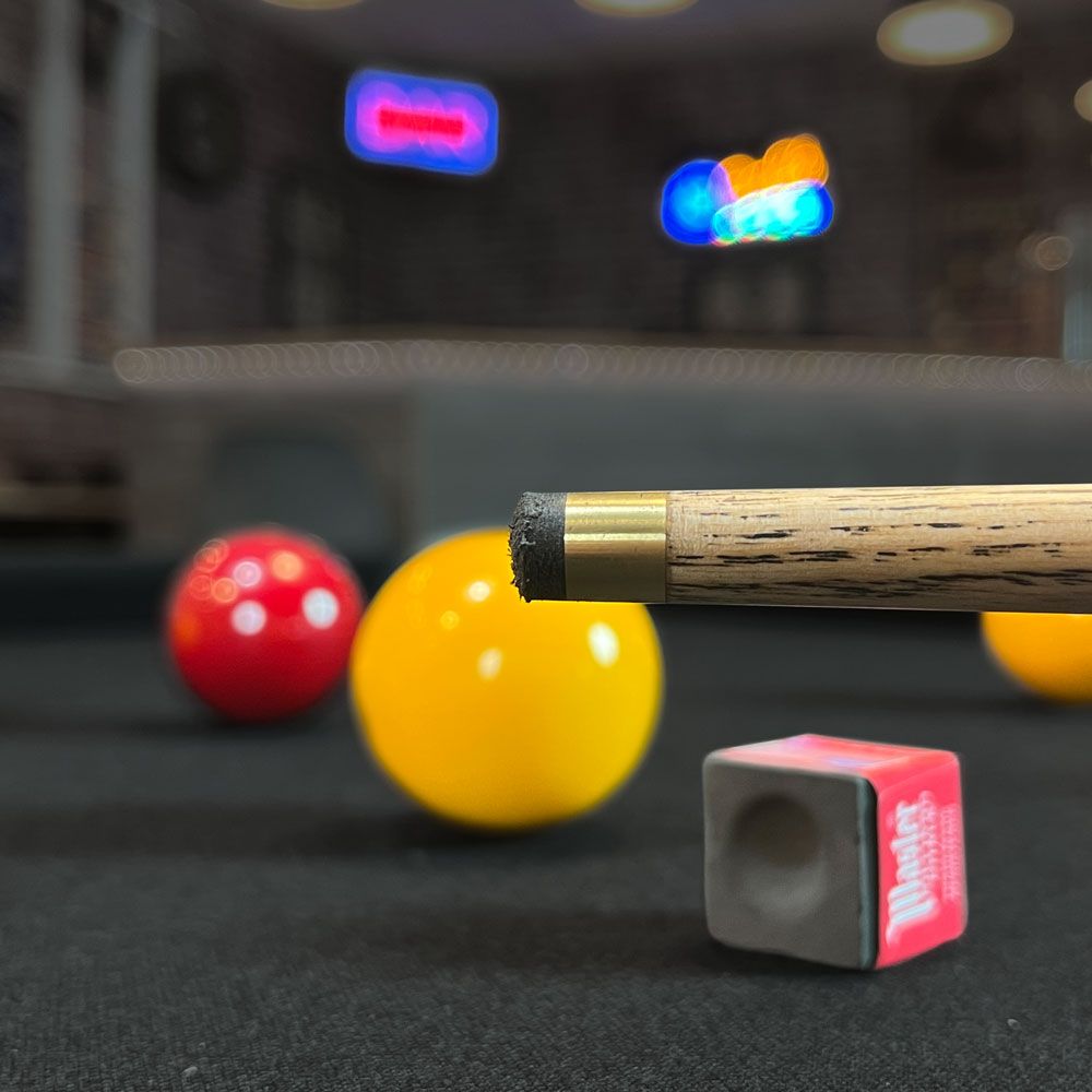 La virole en laiton de 9 mm de diamètre permettra de jouer au snooker comme au black-ball (8-pool). Cette taille est parfaite pour bien appréhender les effets et couvrir l’intégralité du jeu (casse comprise). Le procédé en cuir de dureté M offre une bonne accroche de la craie et accepte parfaitement la prise d'effet.