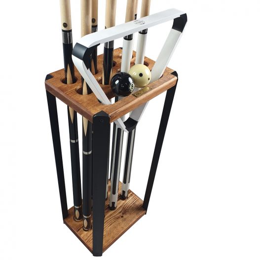Rangez vos queues de billard avec style grâce à ce porte-queue industriel fabriqué en France. Fait en bois massif, il vous permet de stocker jusqu'à 8 queues de billard de façon optimale.
