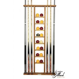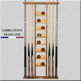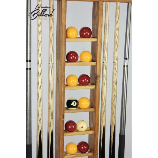 Nous sommes très fiers de vous présenter ce nouveau porte-queues 100% fabriqué en France dans notre atelier du Nord, avec du pin rustique massif certifié FSC. Il vous permettra de ranger 6 queues (américaines us ou anglaises) et un jeu de billes complet.