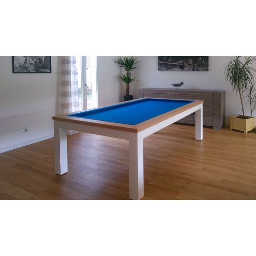 Pour transformer votre billard en table, il vous suffit de recouvrir la surface de jeu par 2 ou 3 plateaux tables. Sur un billard de 2,10 m (une taille courante), vous pouvez recevoir entre 8 et 10 convives. Au besoin, il est également possible d'ajouter 2 personnes supplémentaires grâce à une allonge centrale.