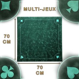 Ces dimensions, qui sont de 70×70 cm, lui permettent d’être utilisé pour une multitude de jeux de cartes différents. Ne vous gênez donc pas pour pratiquer dessus les jeux de casino, comme le black jack ou d’autres jeux comme le poker. Il s’adaptera à n’importe quel type de partie de cartes.